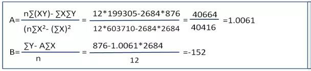 移動(dòng)平均法比算術(shù)平均法先進(jìn)。它是指在積累了n期銷售量的基礎(chǔ)之上,按照事先確定的期數(shù)m(m 預(yù)測(cè)銷售量=最后m期的平均銷售量+趨勢(shì)值 趨勢(shì)值=最后移動(dòng)期的平均值-上一個(gè)移動(dòng)期的平均值 實(shí)例如下: 已知:如下的銷量資料,假定銷售量的移動(dòng)期m為3(季度),趨勢(shì)平均值s移動(dòng)期為3,時(shí)間序列期數(shù)n為11。要求計(jì)算:按移動(dòng)平均法預(yù)測(cè)2018年12月的銷售量。 解:依題意計(jì)算各期銷售量移動(dòng)平均值、趨勢(shì)值和趨勢(shì)值移動(dòng)平均值,其結(jié)果如下示例圖2: 最后一期平均值:(86+91+95)/3=90.67(萬(wàn)元) 趨勢(shì)值=90.67-85.67=5(萬(wàn)元) 所以12月份的預(yù)測(cè)營(yíng)收=90.67+5=95.67(萬(wàn)元) 移動(dòng)平均法,既考慮了銷售量的移動(dòng)平均數(shù),又考慮了趨勢(shì)值的移動(dòng)平均數(shù),邏輯清晰。除移動(dòng)平均法以外,我們常用的還有加權(quán)平均法,加權(quán)法相對(duì)比較簡(jiǎn)單,但有時(shí)我們也會(huì)加權(quán)平均法組合成加權(quán)移動(dòng)平均法。 我們?cè)賮?lái)看另外一種運(yùn)用廣泛因果關(guān)系的預(yù)測(cè)分析方法,即線性回歸分析法。 2.線性回歸分析法: 線性回歸分析法也稱二元一次直線分析法,它的模型是Y=AX+B,數(shù)學(xué)有一定基礎(chǔ)的知道,也就是這類二元一次線性直線。我們先以一個(gè)例子假以說(shuō)明,如下示例圖3: 要求: 用回歸直線分析法建立A產(chǎn)品的營(yíng)收預(yù)測(cè)模型; 預(yù)測(cè)2019年1月份A產(chǎn)品的營(yíng)收額; 第一步進(jìn)行調(diào)表格調(diào)整,如下示例圖4: ▲示例圖4 則線性相關(guān)系數(shù)R約為1,表明X與Y之間是正相關(guān),符合線性回歸性。如下 示例圖5: 依據(jù)公式線性公式可得出A與B的取值,如下示例圖6: 所以:Y=AX+B=1.0061X-152 2019年1月份總營(yíng)收當(dāng)255時(shí),則A產(chǎn)品的營(yíng)收約為:1.0061*255-152=104.5(萬(wàn)元) 或許有人會(huì)說(shuō)這個(gè)計(jì)算的過(guò)程相對(duì)較為復(fù)雜,有沒(méi)有相對(duì)更簡(jiǎn)單的方法?答案是肯定的。在EXCEL函數(shù)中,F(xiàn)ORECAST回歸預(yù)測(cè)法,正是上面推導(dǎo)的一個(gè)應(yīng)用工具函數(shù)。具體使用方法如下示例圖7,計(jì)算出結(jié)果是104.2萬(wàn)元;其結(jié)果與上面計(jì)算得出的104.5兩者的吻合度99.97%,是非常高的。 ▲示例圖7 二、修正預(yù)測(cè)數(shù)據(jù) 在實(shí)際的管理中,因?yàn)樘厥獾墓?jié)點(diǎn)等因素,部分?jǐn)?shù)據(jù)會(huì)異常突變,我們可稱之這異常數(shù)據(jù),在做數(shù)據(jù)分析時(shí),我們?yōu)楸苊猱惓?shù)據(jù)平均化,須提前把那一類的數(shù)據(jù)單獨(dú)加工處理。 1.異常節(jié)點(diǎn)維度 (1) 特殊時(shí)期(春節(jié)、國(guó)慶、雙11、黑色星期五等)活動(dòng)的趨勢(shì); (2) NPI(新產(chǎn)品導(dǎo)入)快速切入要求; (3) 滯銷或呆滯的要求; (4) ECN(工程切換)要求; (5) MPQ(較小包裝量)、MOQ(較小訂單量)等原因; (6) 增量幅度; (7) 重大品質(zhì)客訴; 2.預(yù)測(cè)期數(shù) 銷售預(yù)測(cè)時(shí),為避免數(shù)據(jù)短期波動(dòng),我們?cè)谌?shù)時(shí)應(yīng)考慮的期數(shù)盡量要長(zhǎng)。 (1) 做年度預(yù)測(cè),建議取近2年整年度的數(shù)據(jù),即N=24; (2) 做季度預(yù)測(cè),建議取近12個(gè)月年數(shù)據(jù),即N=12; (3) 做月度預(yù)測(cè),建議取近6個(gè)月年數(shù)據(jù)。即N=6; 實(shí)際的管理中,無(wú)論是銷售管理還是庫(kù)存管理,要做到精細(xì)化預(yù)測(cè)其難度遠(yuǎn)不僅限以上要求。還有許許多多的無(wú)法控制的外在因素,比如:大的經(jīng)濟(jì)環(huán)境、同行競(jìng)爭(zhēng)、競(jìng)爭(zhēng)品等。只有我們熟練地掌握預(yù)測(cè)的工具并科學(xué)加以運(yùn)用,同時(shí)結(jié)合適度提前考慮等外在因素可能會(huì)造成的影響,唯有這樣,我們的預(yù)測(cè)才能做到貼合于實(shí)際,也才會(huì)更精準(zhǔn)。▲示例圖2