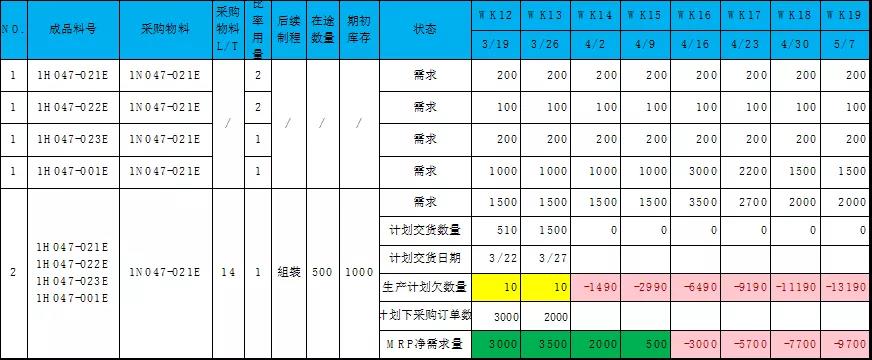 ③清楚的MRP邏輯;即凈需求=總需求-庫存-在途-在制(WIP);