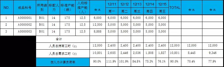 產(chǎn)能負(fù)荷表模版,如下截圖3: