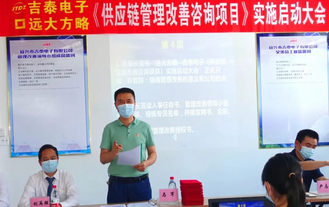 近日,宜興市吉泰電子有限公司(以下簡稱“吉泰電子”)攜手遠(yuǎn)大方略啟動《供應(yīng)鏈管理》咨詢項目,改善供應(yīng)鏈管理系統(tǒng),促進(jìn)企業(yè)降本增效。