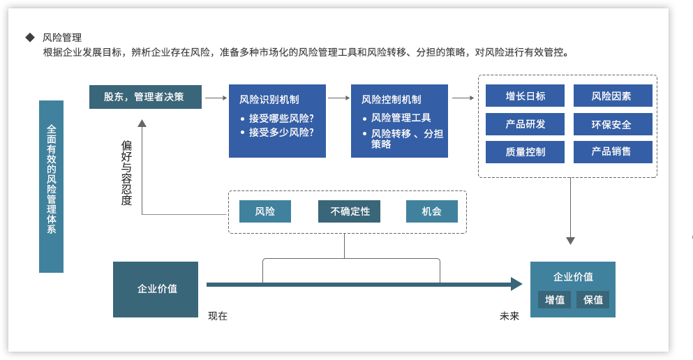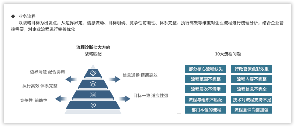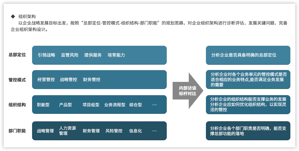 遠大方略認為,為了強化國有企業(yè)組織管控能力,企業(yè)需要以戰(zhàn)略發(fā)展目標(biāo)為出發(fā)點,從組織架構(gòu)、集團管控、業(yè)務(wù)流程、風(fēng)險管理、財務(wù)管控等各個方面進行全面提升,構(gòu)建系統(tǒng)全面的管控體系。