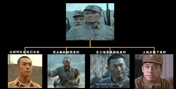 案例:李云龍如何構(gòu)建核心團隊(魏和尚:解救后吸引而來;孫連長:用五挺重機槍從別的隊伍挖過來;張營長:自己培養(yǎng)提拔起來,是打出來的;趙政委:上級委派而來。
