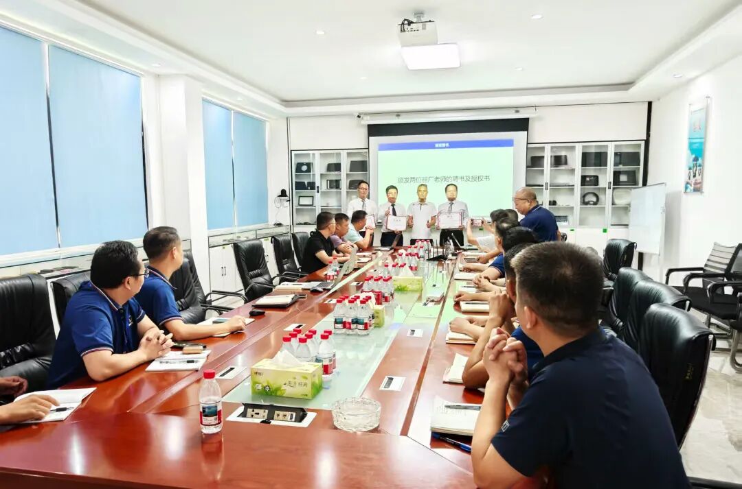 為促進項目的有效落地,會上竣邦公司領導為駐廠老師頒發(fā)了聘書和授權書。
